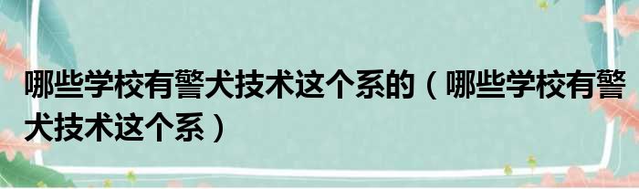 大家好,小纵来为大家解答以上问题。哪些学校有警犬技术这个系的,哪些学校有警犬技术这个系这个很多人还不清楚,现在一起跟着小编来瞧瞧吧!