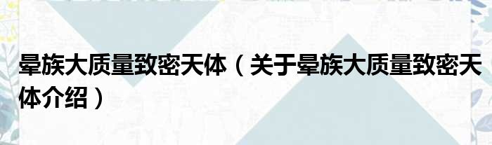 关于晕族大质量致密天体到此分享完毕,希望能帮助到您。