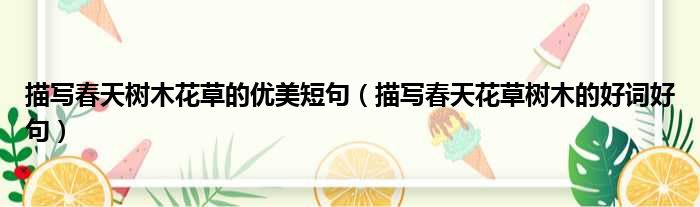 大家好,小纵来为大家解答以上问题。描写春天树木花草的优美短句,描写春天花草树木的好词好句这个很多人还不清楚,现在一起跟着小编来瞧瞧吧!