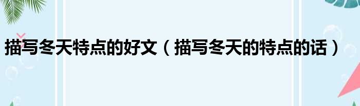 大家好,小纵来为大家解答以上问题。描写冬天特点的好文,描写冬天的特点的话这个很多人还不清楚,现在一起跟着小编来瞧瞧吧!