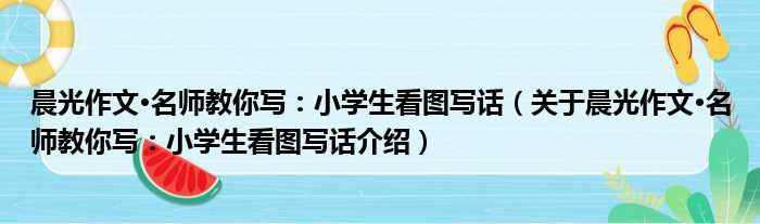 关于晨光作文·名师教你写:小学生看图写话到此分享完毕,希望能帮助到您。
