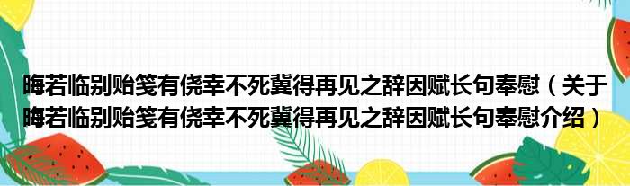 关于晦若临别贻笺有侥幸不死冀得再见之辞因赋长句奉慰到此分享完毕,希望能帮助到您。