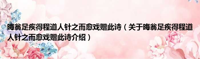 关于晦翁足疾得程道人针之而愈戏赠此诗到此分享完毕,希望能帮助到您。