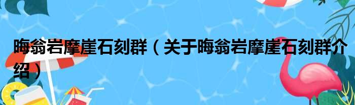 大家好,小钱来为大家解答以上的问题。晦翁岩摩崖石刻群,关于晦翁岩摩崖石刻群介绍这个很多人还不知道,现在让我们一起来看看吧!