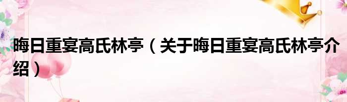 免责声明:本文由用户上传,如有侵权请联系删除!大家好,小钱来为大家解答以上的问题。晦日重宴高氏林亭,关于晦日重宴高氏林亭介绍这个很多人还不知道,现在让我们一起来看看吧!
