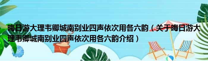关于晦日游大理韦卿城南别业四声依次用各六韵到此分享完毕,希望能帮助到您。