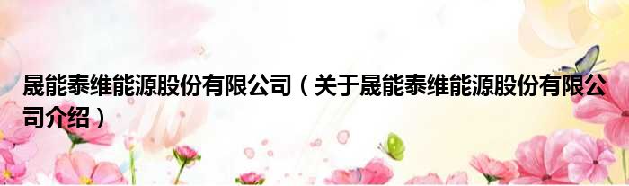 关于晟能泰维能源股份有限公司到此分享完毕,希望能帮助到您。
