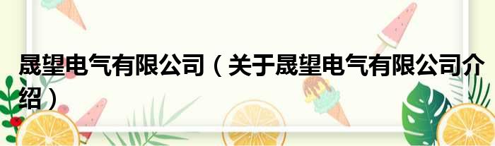 关于晟望电气有限公司到此分享完毕,希望能帮助到您。