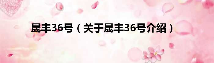 大家好,小钱来为大家解答以上的问题。晟丰36号,关于晟丰36号介绍这个很多人还不知道,现在让我们一起来看看吧!