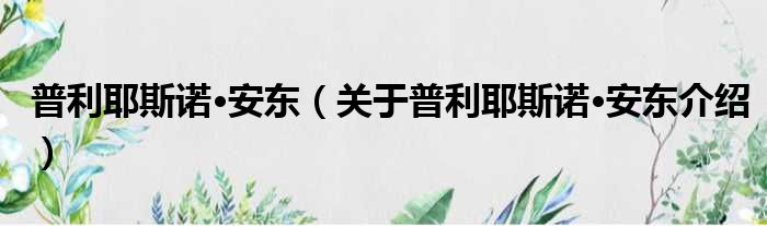 大家好,小钱来为大家解答以上的问题。普利耶斯诺·安东,关于普利耶斯诺·安东介绍这个很多人还不知道,现在让我们一起来看看吧!