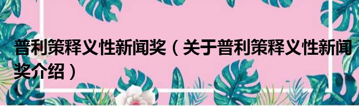 关于普利策释义性新闻奖到此分享完毕,希望能帮助到您。