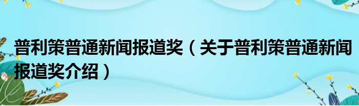 大家好,小钱来为大家解答以上的问题。普利策普通新闻报道奖,关于普利策普通新闻报道奖介绍这个很多人还不知道,现在让我们一起来看看吧!