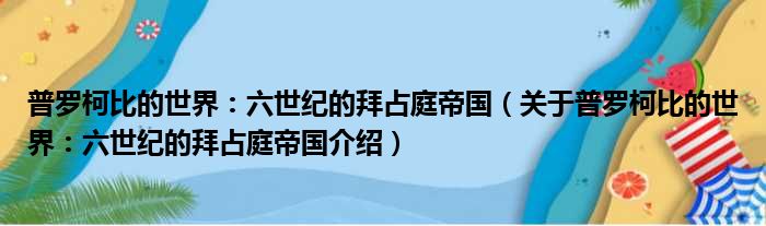 关于普罗柯比的世界:六世纪的拜占庭帝国到此分享完毕,希望能帮助到您。