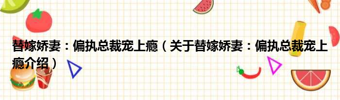 免责声明:本文由用户上传,如有侵权请联系删除!大家好,小钱来为大家解答以上的问题。替嫁娇妻:偏执总裁宠上瘾,关于替嫁娇妻:偏执总裁宠上瘾介绍这个很多人还不知道,现在让我们一起来看看吧!
