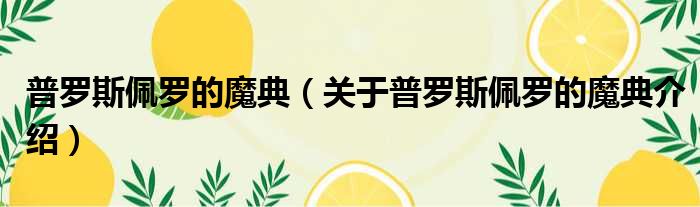 免责声明:本文由用户上传,如有侵权请联系删除!大家好,小钱来为大家解答以上的问题。普罗斯佩罗的魔典,关于普罗斯佩罗的魔典介绍这个很多人还不知道,现在让我们一起来看看吧!