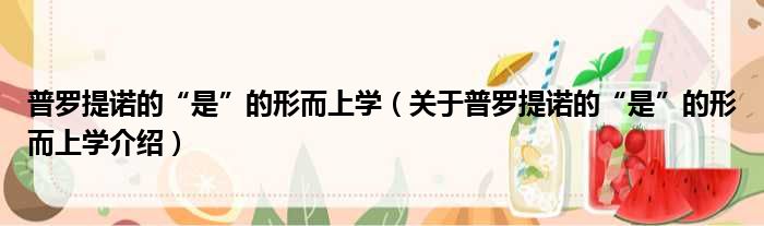 关于普罗提诺的“是”的形而上学到此分享完毕,希望能帮助到您。