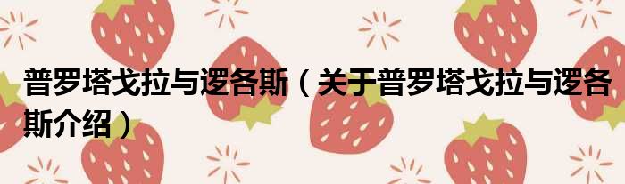 关于普罗塔戈拉与逻各斯到此分享完毕,希望能帮助到您。