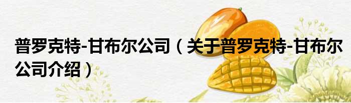 关于普罗克特-甘布尔公司到此分享完毕,希望能帮助到您。