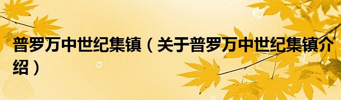 大家好,小钱来为大家解答以上的问题。普罗万中世纪集镇,关于普罗万中世纪集镇介绍这个很多人还不知道,现在让我们一起来看看吧!