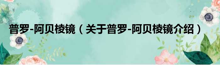 关于普罗-阿贝棱镜到此分享完毕,希望能帮助到您。