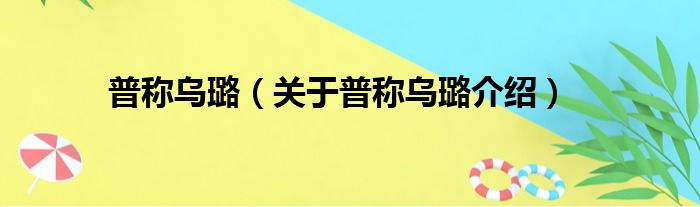 免责声明:本文由用户上传,如有侵权请联系删除!大家好,小钱来为大家解答以上的问题。普称乌璐,关于普称乌璐介绍这个很多人还不知道,现在让我们一起来看看吧!