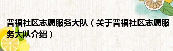 关于普福社区志愿服务大队到此分享完毕,希望能帮助到您。