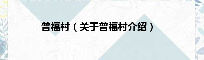 大家好,小钱来为大家解答以上的问题。普福村,关于普福村介绍这个很多人还不知道,现在让我们一起来看看吧!