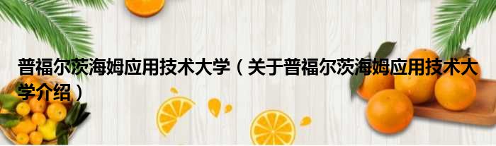免责声明:本文由用户上传,如有侵权请联系删除!大家好,小钱来为大家解答以上的问题。普福尔茨海姆应用技术大学,关于普福尔茨海姆应用技术大学介绍这个很多人还不知道,现在让我们一起来看看吧!