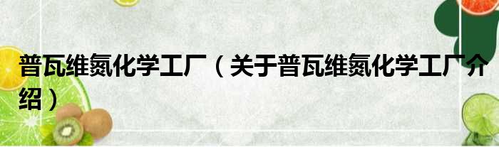 大家好,小钱来为大家解答以上的问题。普瓦维氮化学工厂,关于普瓦维氮化学工厂介绍这个很多人还不知道,现在让我们一起来看看吧!