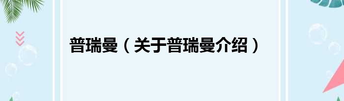大家好,小钱来为大家解答以上的问题。普瑞曼,关于普瑞曼介绍这个很多人还不知道,现在让我们一起来看看吧!