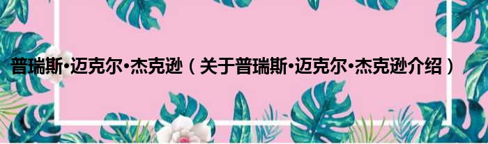关于普瑞斯·迈克尔·杰克逊到此分享完毕,希望能帮助到您。