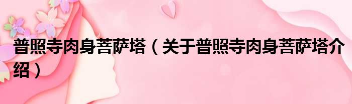 关于普照寺肉身菩萨塔到此分享完毕,希望能帮助到您。