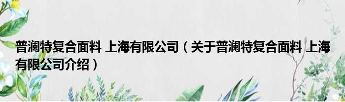 关于普澜特复合面料 上海有限公司到此分享完毕,希望能帮助到您。
