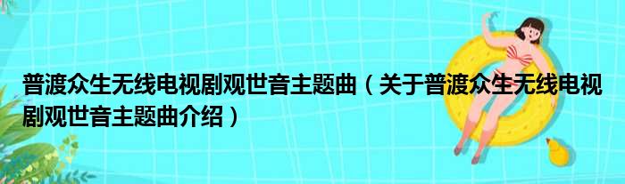 免责声明:本文由用户上传,如有侵权请联系删除!大家好,小钱来为大家解答以上的问题。普渡众生无线电视剧观世音主题曲,关于普渡众生无线电视剧观世音主题曲介绍这个很多人还不知道,现在让我们一起来看看吧!