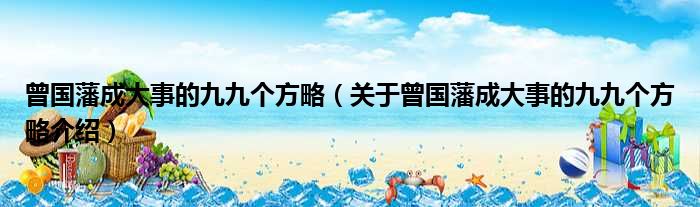 关于曾国藩成大事的九九个方略到此分享完毕,希望能帮助到您。