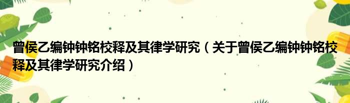 关于曾侯乙编钟钟铭校释及其律学研究到此分享完毕,希望能帮助到您。