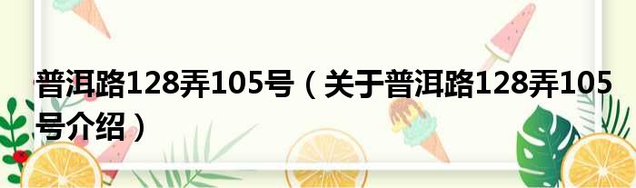 关于普洱路128弄105号到此分享完毕,希望能帮助到您。