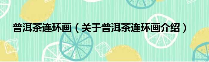 关于普洱茶连环画到此分享完毕,希望能帮助到您。