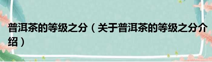 关于普洱茶的等级之分到此分享完毕,希望能帮助到您。