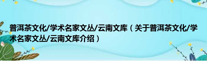 关于普洱茶文化/学术名家文丛/云南文库到此分享完毕,希望能帮助到您。