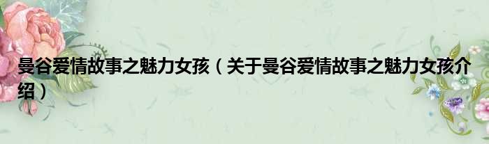 免责声明:本文由用户上传,如有侵权请联系删除!大家好,小钱来为大家解答以上的问题。曼谷爱情故事之魅力女孩,关于曼谷爱情故事之魅力女孩介绍这个很多人还不知道,现在让我们一起来看看吧!