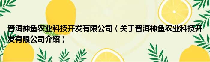 免责声明:本文由用户上传,如有侵权请联系删除!大家好,小钱来为大家解答以上的问题。普洱神鱼农业科技开发有限公司,关于普洱神鱼农业科技开发有限公司介绍这个很多人还不知道,现在让我们一起来看看吧!
