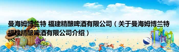 关于曼海姆博兰特 福建精酿啤酒有限公司到此分享完毕,希望能帮助到您。