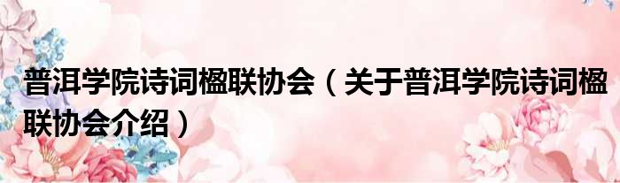 大家好,小钱来为大家解答以上的问题。普洱学院诗词楹联协会,关于普洱学院诗词楹联协会介绍这个很多人还不知道,现在让我们一起来看看吧!