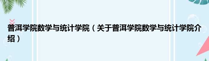 大家好,小钱来为大家解答以上的问题。普洱学院数学与统计学院,关于普洱学院数学与统计学院介绍这个很多人还不知道,现在让我们一起来看看吧!