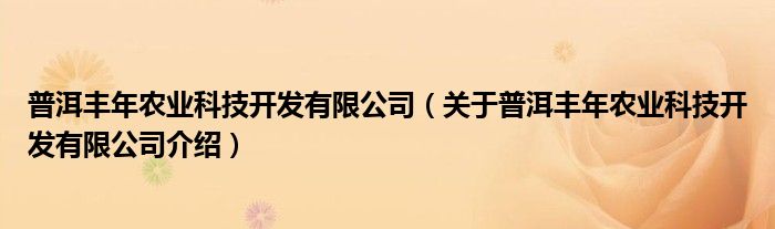 关于普洱丰年农业科技开发有限公司到此分享完毕,希望能帮助到您。
