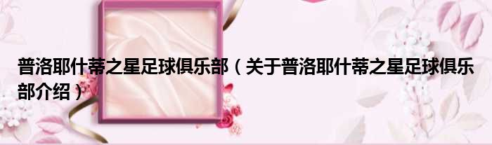 1、 普洛耶什蒂之星足球俱乐部是一家足球俱乐部。