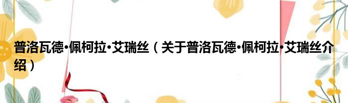 关于普洛瓦德·佩柯拉·艾瑞丝到此分享完毕,希望能帮助到您。