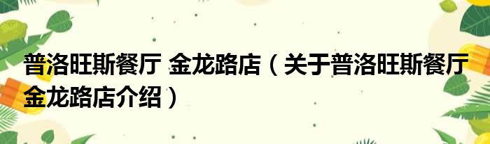 1、 普洛旺斯餐厅(金龙路店)是一家西餐厅。