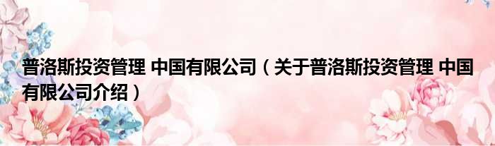 关于普洛斯投资管理 中国有限公司到此分享完毕,希望能帮助到您。